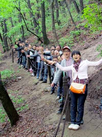 綿綿細雨并未滯留我們前往的腳步,絲絲的涼意也已沖淡旅途疲憊,一路歡聲笑語更是緩解了大家緊張的心情。到達崆峒山,遠山與鄉(xiāng)村在朦朧中忽隱忽現(xiàn),層層疊疊相得益彰,儼然一副唯美的雨中山水畫卷,讓人如癡如醉。我們的隊伍沿山路拾階而上,陡峭的石階,在巍峨的大山上時隱時現(xiàn),既是對攀登者勇氣的挑戰(zhàn),又是人生理想的誘惑,大家一路上相互扶持,相互幫助,沒有讓一名同事掉隊。最終,在大家共同的努力下,我們最終戰(zhàn)勝了巍峨的大山,站在山頂盡情吶喊,高聲歡呼。此次登山活動使我們整個團隊戰(zhàn)勝困難、勇往直前的勇氣得到了很大的增強,相信在以后的工作中我們能戰(zhàn)勝更多困難。